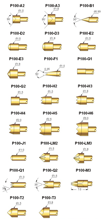 而針桿有兩種材質(zhì):其中一種是磷銅鍍鎳,另外一種是鈹銅(或SK4)進(jìn)行鍍金(或銠)。