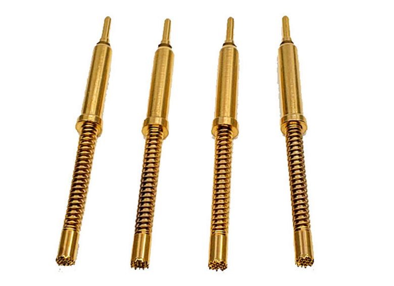 結(jié)構(gòu)設(shè)計(jì)特點(diǎn):大電流場(chǎng)景下,電流產(chǎn)生的電磁力和發(fā)熱可能導(dǎo)致探針變形或接觸松動(dòng),因此結(jié)構(gòu)設(shè)計(jì)需滿足機(jī)械穩(wěn)定性和壓力一致性。探針內(nèi)部通常包含彈簧,如鈹銅彈簧,通過(guò)預(yù)壓縮提供穩(wěn)定的接觸壓力,探針外殼采用高強(qiáng)度材料,如不銹鋼,避免大電流產(chǎn)生的磁流路徑的穩(wěn)定性。