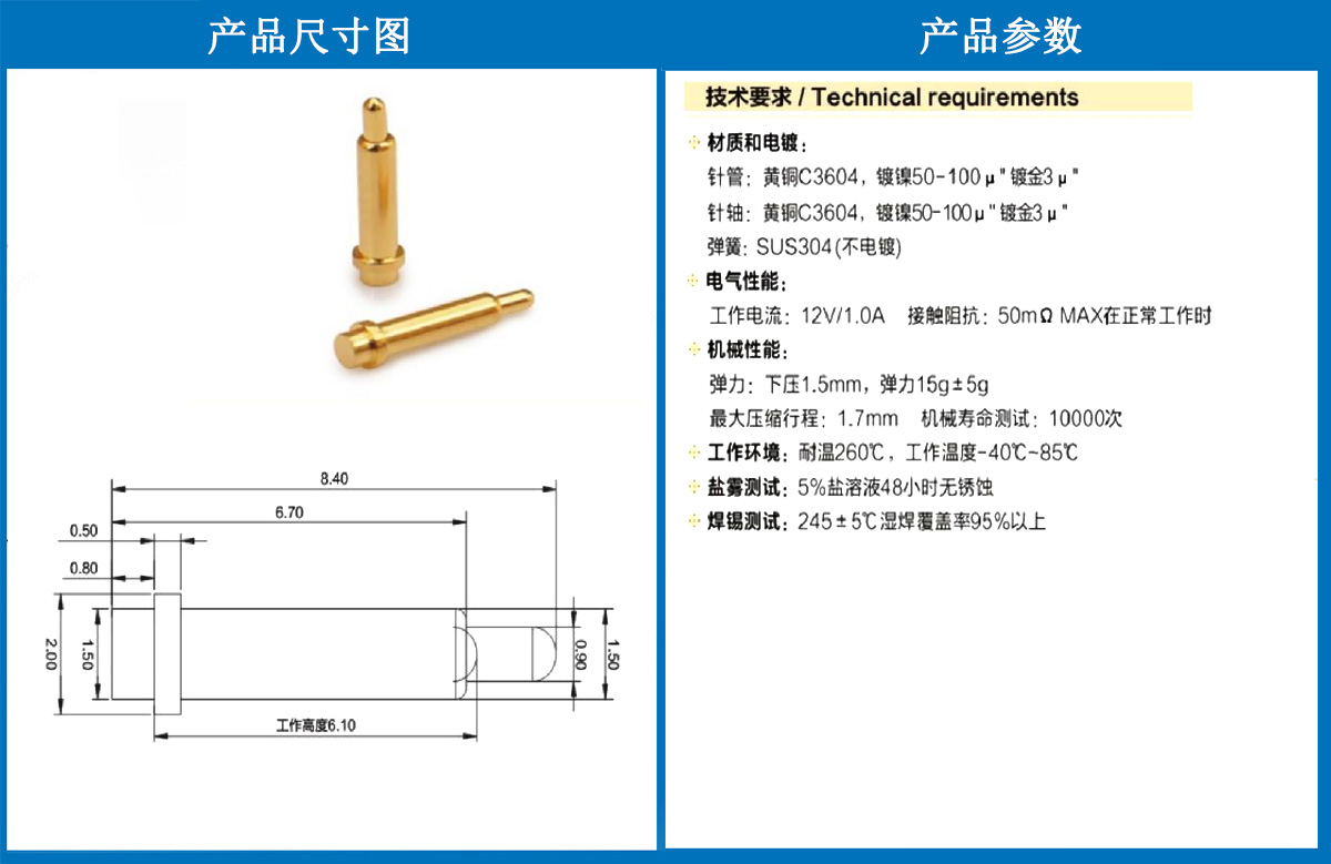 產(chǎn)品介紹:這個(gè)針通常用于智能手表,藍(lán)牙耳機(jī)上的有充電的功能,但是探針總體來(lái)說(shuō)還是測(cè)試的