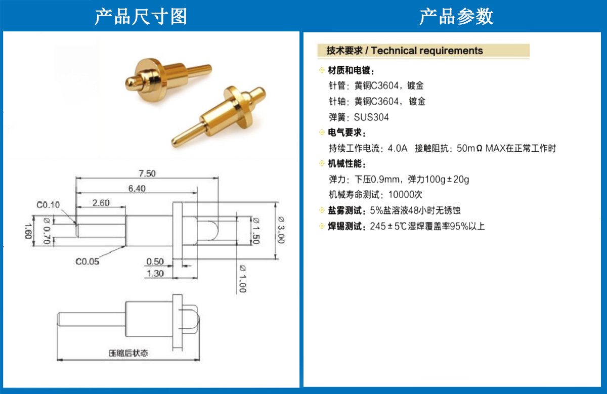 3.0*7.5電極針 當(dāng)前位置:首頁(yè) » POGO PIN充電彈簧頂針 » 電極針