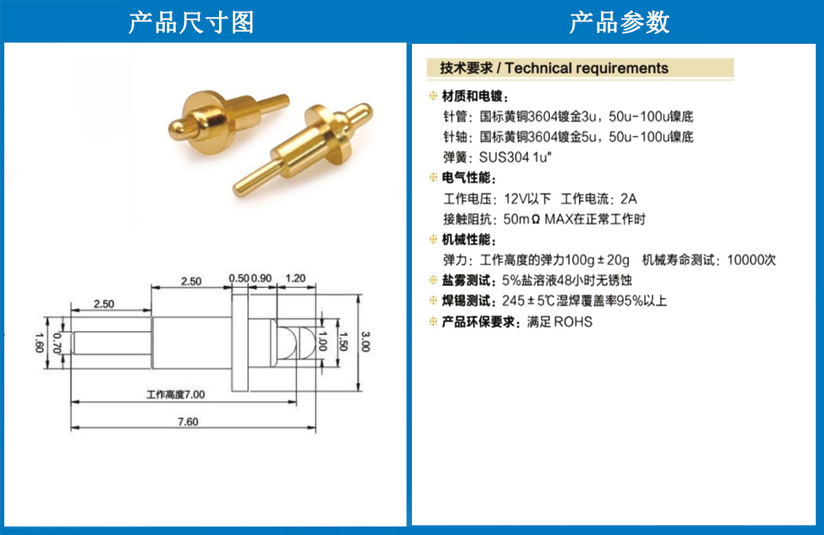 產(chǎn)品介紹:這個(gè)針通常用于智能手表,藍(lán)牙耳機(jī)上的有充電的功能,但是探針總體來(lái)說(shuō)還是測(cè)試的