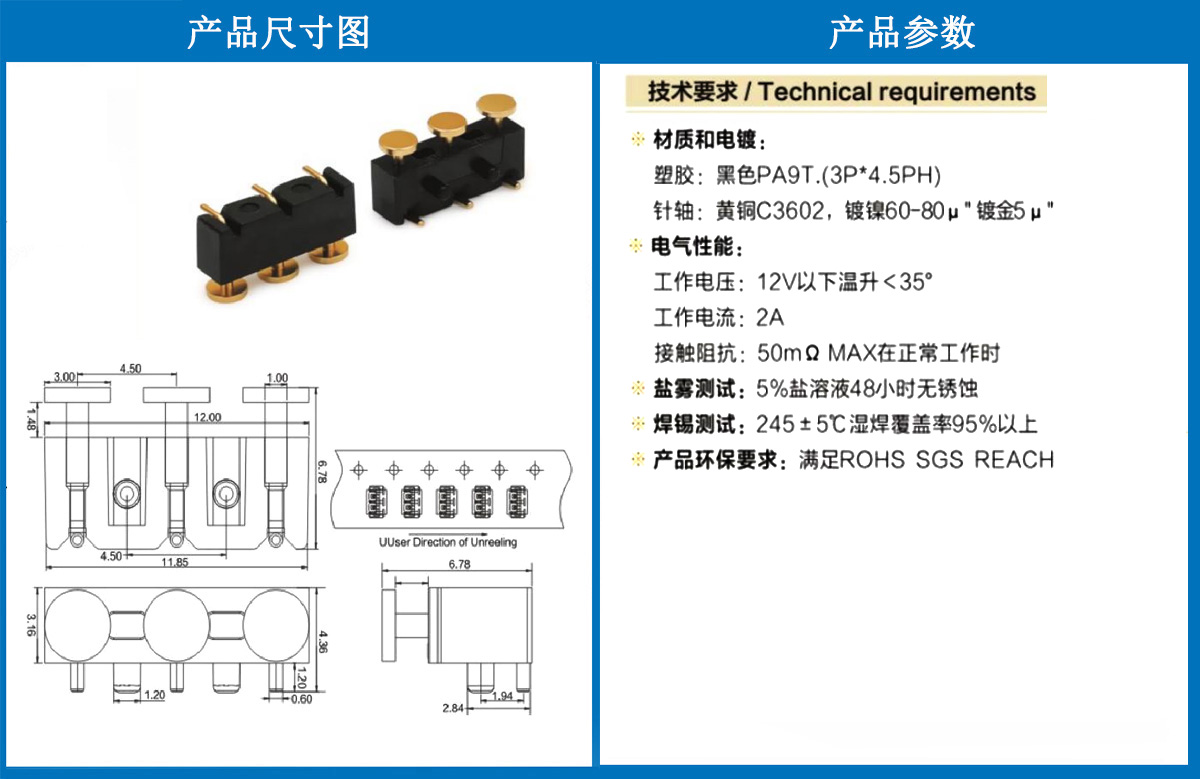 產(chǎn)品介紹:這個(gè)針通常用于智能手表,藍(lán)牙耳機(jī)上的有充電的功能,但是探針總體來說還是測(cè)試的