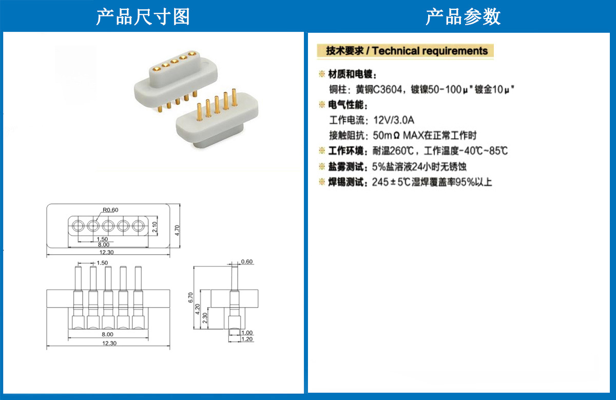 產(chǎn)品介紹:這個(gè)針通常用于智能手表,藍(lán)牙耳機(jī)上的有充電的功能,但是探針總體來說還是測試的