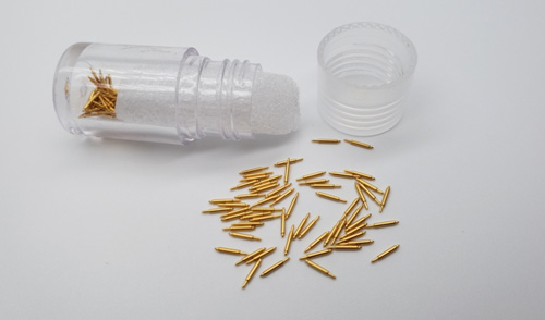 隨著社會的不斷科技化,人們的生活水平也不斷的提高,手機(jī)、電腦、汽車、智能手表等也不斷的普及,對探針的需求也越來越大! 探針是電測試的接觸媒介,為高端精密型電子五金元器件。它在各個(gè)領(lǐng)域都有應(yīng)用,例如在醫(yī)療、航空航天、生物、計(jì)算機(jī)等領(lǐng)域都有的應(yīng)用。而不同型號的探針,所用的材質(zhì)及價(jià)格也會不同。探針的材質(zhì)主要有鈹銅、磷銅、黃銅、SK4、等,今天主要給大家講解一下探針表面為什么要進(jìn)行鍍金處理? 簡單來說,鍍金就是為了防止銅生銹,生銹之后產(chǎn)生的銅綠會增加電阻,探針的穩(wěn)定性及使用功能也會受到影響。 一、鍍金的好處: 1.鍍金層延展性好、易拋光、耐高溫,具有很好的抗變色性能。在銀層上鍍金可以防止銀的變色;金合金鍍層可呈現(xiàn)多種色調(diào),故常用作裝飾性鍍層,如鍍首飾、鐘表零件、藝術(shù)品等。 2.鍍金具有較低的接觸電阻、導(dǎo)電性能良好、易于焊接、耐腐蝕性強(qiáng)、并具有一定的耐磨性(指硬金),因而在精密儀器儀表、